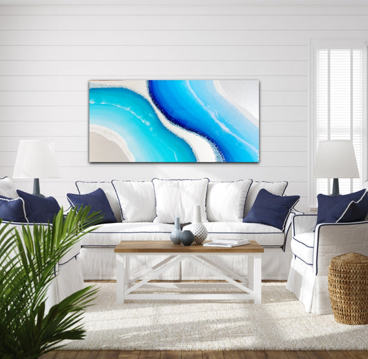 Elevate your space with original fine art designed to shimmer with life and movement. Each piece is meticulously handcrafted with rich layers of resin, hand-painted details, reflective crushed glass, and radiant sparkles that capture the essence of flowing water, ocean horizons, and the raw beauty of natural geodes. No two artworks are ever alike — each is a true one-of-a-kind statement, blending modern sophistication with organic elegance. Designed to transform your environment, these pieces offer more than decor — they offer an experience.