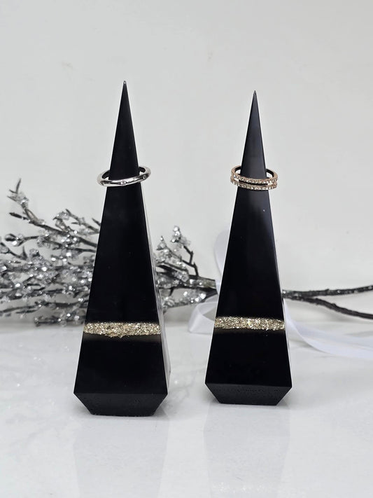 Elevate your jewelry display with these handcrafted artisan pyramid ring holders. Each piece is uniquely designed, ensuring no two are alike. Perfectly blending functionality with artistry, these ring holders are ideal for organizing your favorite rings while adding a stylish touch to your space. A thoughtful and unique gift for any occasion.