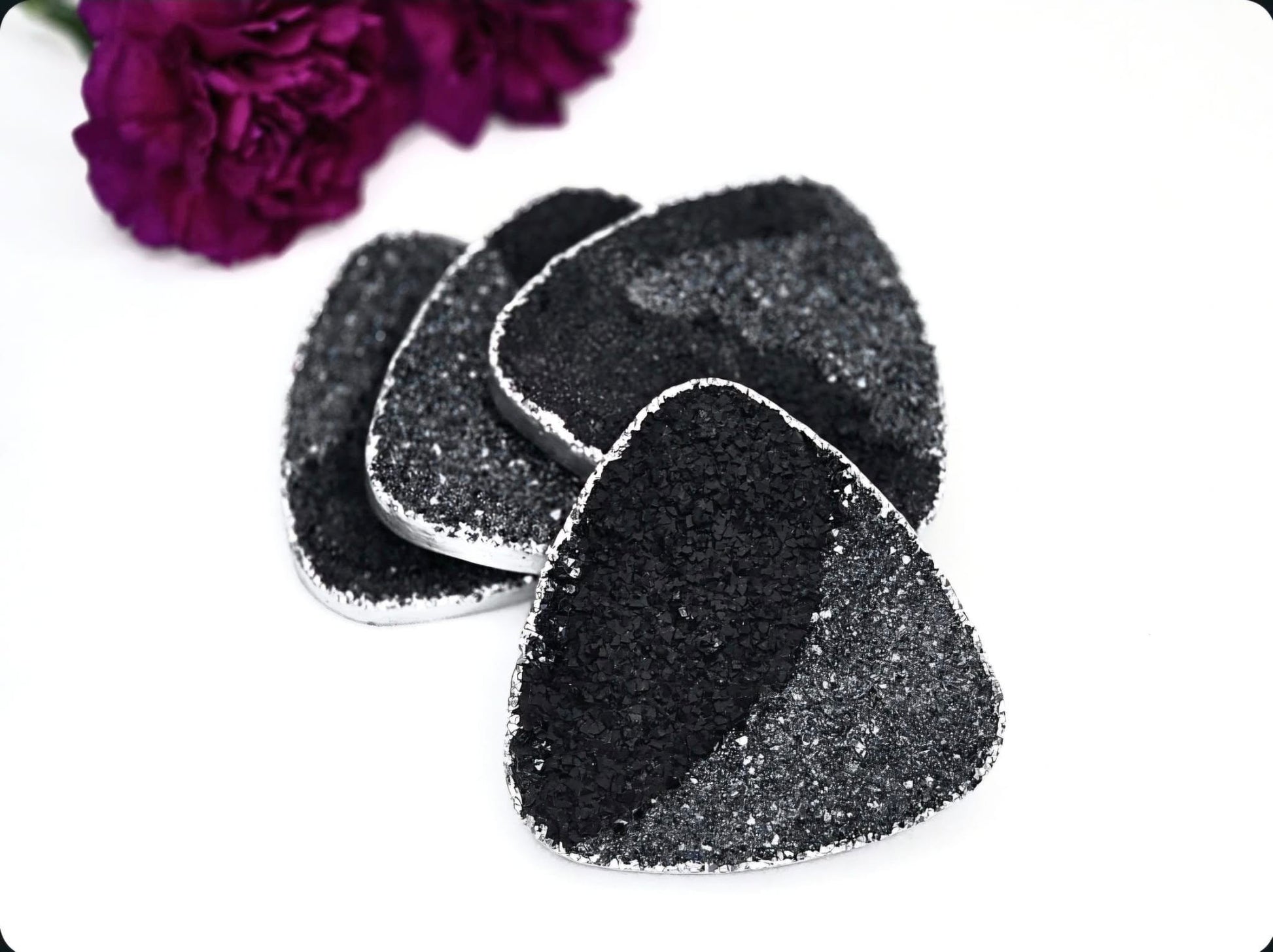 Add a touch of elegance to your home with these stunning agate-inspired coasters. Each piece is crafted with care, featuring intricate natural patterns reminiscent of genuine agate stones. Trimmed with hand-painted metallic silver edging, these coasters bring a luxurious finish to your coffee table, dining setting, or office desk. Perfectly blending style and functionality, they protect your surfaces while elevating your decor. Ideal for gifting or indulging in a little everyday luxury.
